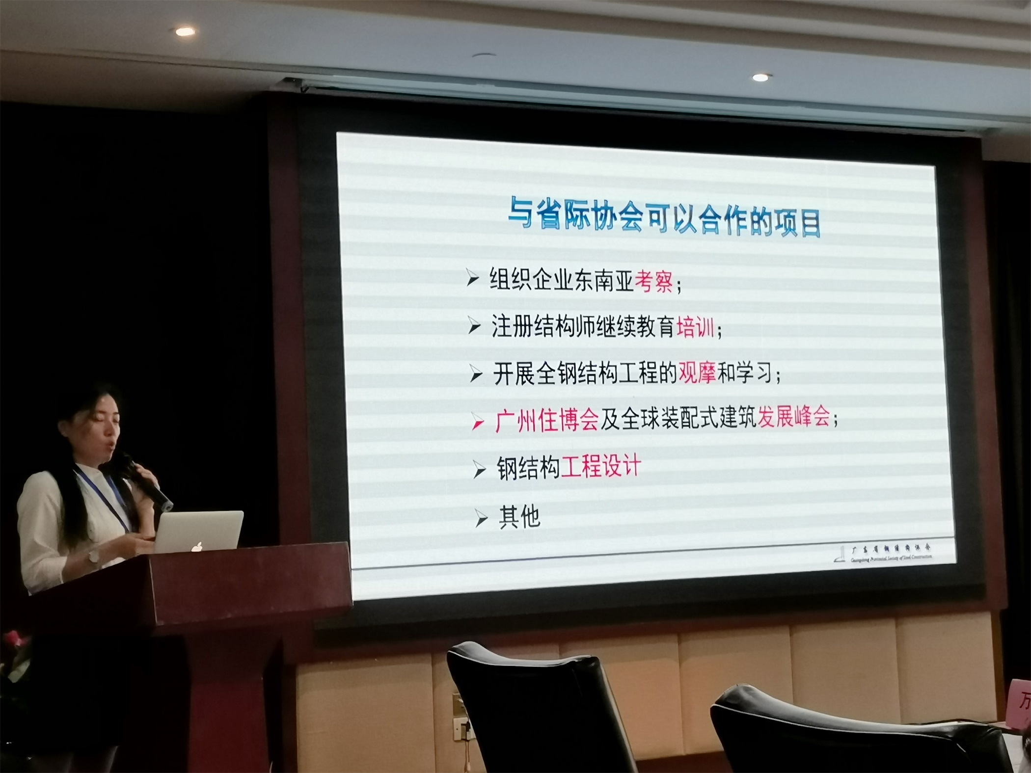 作為本次會議的東道主,廣東省鋼結(jié)構(gòu)協(xié)會萬秘書長對協(xié)會成立25周年以來的工作成果和計劃做出了具體的報告,并期待與省際協(xié)會就以下項目開展深入合作: