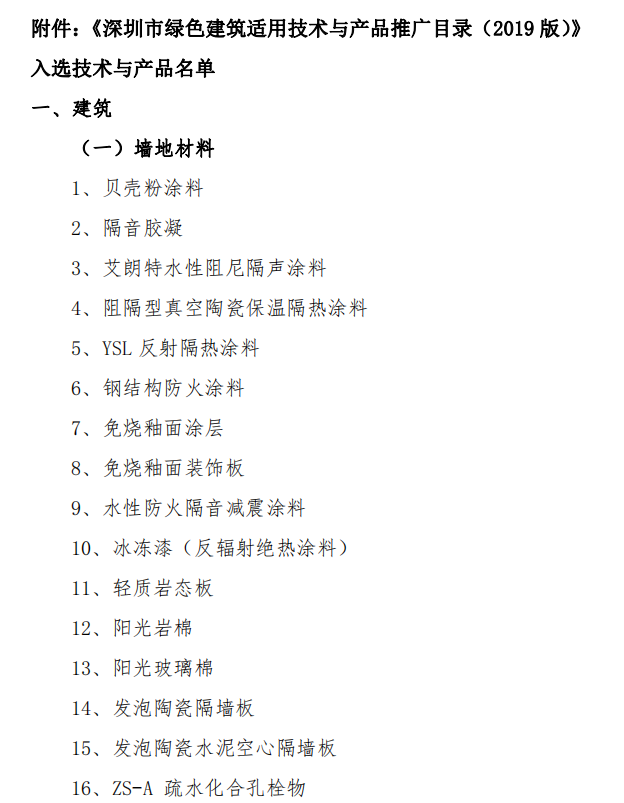 《深圳市綠色建筑適用技術與產品推廣目錄(2019版)》入選技術與產品名單公告