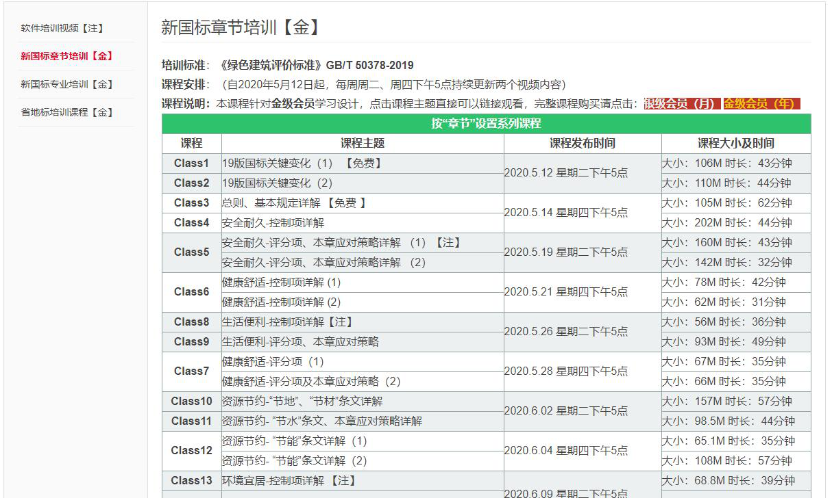 6、金級會員可獲得“視頻中心”模塊中包含新國標(biāo)全專業(yè)全章節(jié)精講在內(nèi)的所有最專業(yè)的綠建培訓(xùn)視頻的在線觀看。