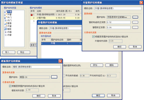 “模板”是負荷計算中的重要概念。使用模板的優(yōu)點,使數(shù)據(jù)的修s編輯非常方便。在設(shè)計、計算過程中,如果圍護結(jié)構(gòu)需要調(diào)整,只需在模板管理器中,編輯修改模板數(shù)據(jù),則所有引用該模板的圍護結(jié)構(gòu),全部自動調(diào)整,無需對逐個房間、逐個圍護結(jié)構(gòu)進行修改編輯。