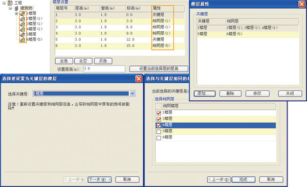 大部分的建筑物中,除了少數(shù)樓層的幾何形狀、功能分區(qū)不相同外,大部分樓層都是相同的,尤其是住宅建筑。因此負荷計算引入了關(guān)鍵層、相同層和普通層的概念,關(guān)鍵層中所有房間的改變都會體現(xiàn)在相同層中,大大減少了數(shù)據(jù)錄入和編輯的工作量。