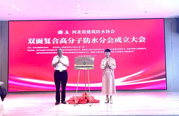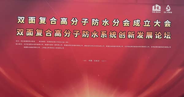 2023年9月11日,由河北省建筑防水協(xié)會(huì)主辦、雙面復(fù)合高分子防水分會(huì)(籌)承辦、北京圣潔防水材料有限公司、哈高科綏棱二塑有限公司、秦皇島市松巖建材有限公司、秦皇島天衣防水材料有限公司、秦皇島地維建材有限公司、北京世紀(jì)保佳建筑材料有限責(zé)任公司、吉林省翔河建筑材料有限公司、海盾防水建材有限公司、上海金山僑茂綜合工程有限公司協(xié)辦的“河北省建筑防水協(xié)會(huì)雙面復(fù)合高分子防水分會(huì)成立大會(huì)、雙面復(fù)合高分子防水系統(tǒng)創(chuàng)新發(fā)展論壇”在石家莊舉行。