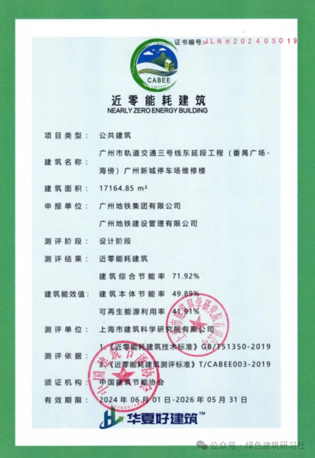經(jīng)專業(yè)機(jī)構(gòu)評(píng)測(cè),廣州新城停車場(chǎng)維修樓項(xiàng)目建筑本體節(jié)能率達(dá)49.89%,可再生能源利用率41.91%,綜合節(jié)能率高達(dá)71.92%,節(jié)能降碳效果處于國內(nèi)同類建筑領(lǐng)先地位。此外,停車場(chǎng)對(duì)標(biāo)近零碳建筑標(biāo)準(zhǔn)預(yù)留了零碳條件,后續(xù)在引入綠色電力后,將具備軌道交通首個(gè)零碳建筑的基礎(chǔ)。