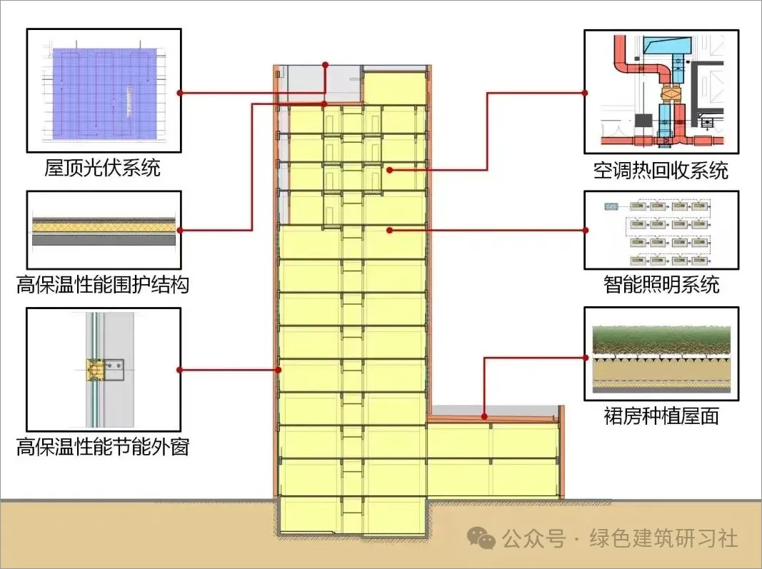 維修樓作為車輛基地內(nèi)的標(biāo)志性高層民用建筑,集綜合辦公維修、司乘休憩空間及后勤安保功能于一體,總建筑面積約1.65萬平方米,地上十二層,地下一層。該樓充分利用可再生能源,獲得“綠建三星”和“近零能耗建筑”雙認(rèn)證。