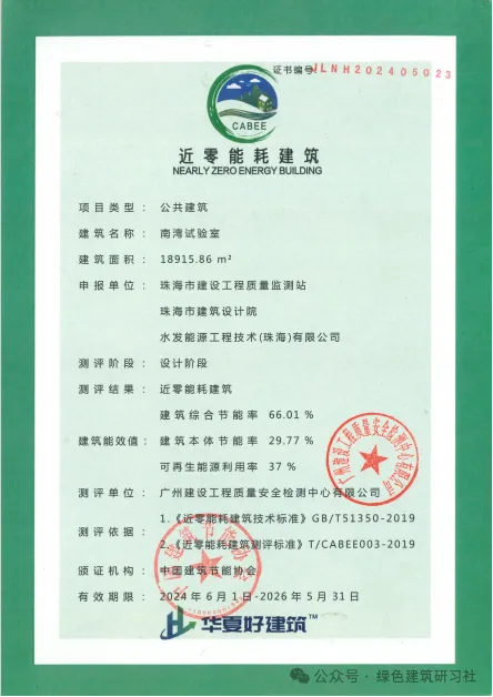 近期,南灣試驗(yàn)室項(xiàng)目榮獲中國建筑節(jié)能協(xié)會(huì)認(rèn)證“近零能耗建筑”標(biāo)識(shí)。