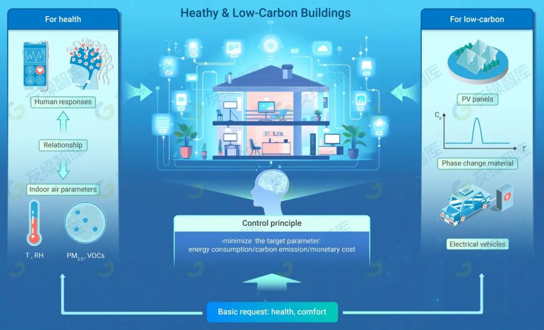 打造健康低碳的建筑,要牢記:(1)健康低碳要一起解決,絕不能相互對立;(2)應開發(fā)創(chuàng)新方法,以創(chuàng)建具有良好空氣質量的健康建筑;(3)應妥善開發(fā)和應用減少建筑能耗和碳排放的創(chuàng)新技術;(4)健康低碳建筑創(chuàng)新理論和模型亟待開發(fā);(5)應正確使用各種智能技術,并應與多學科研究人員合作。如圖1.