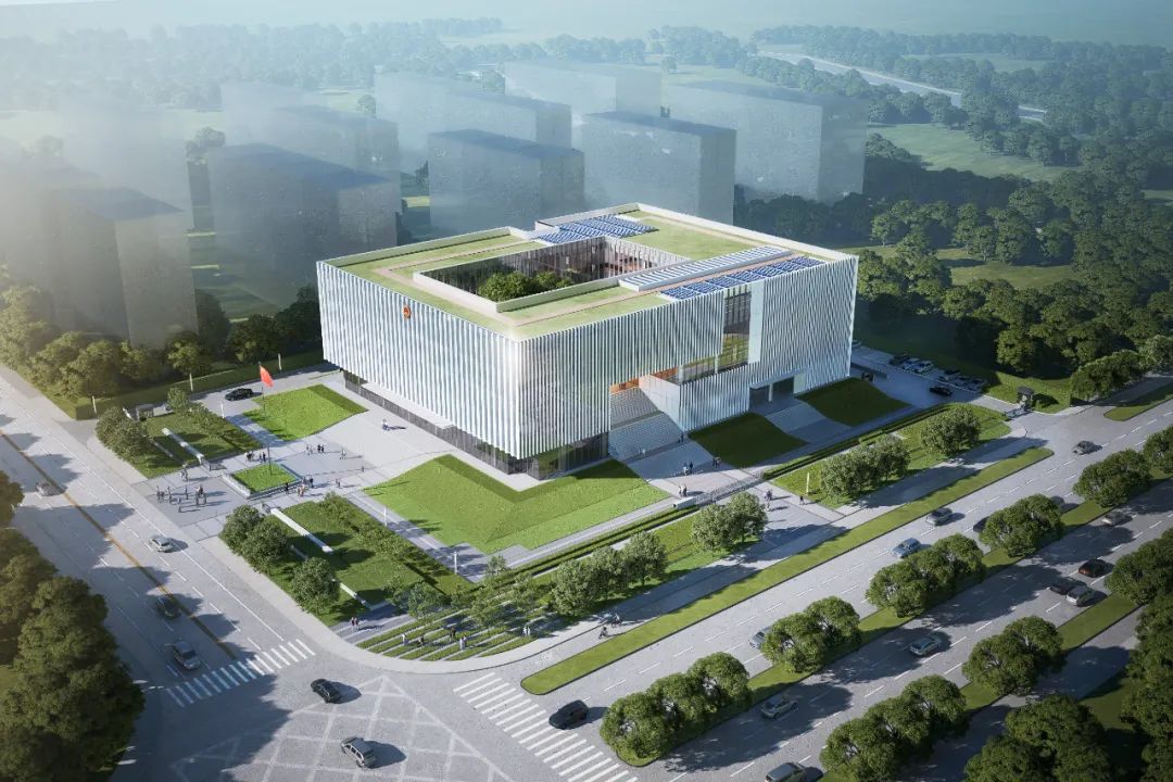 對(duì)稱(chēng)莊嚴(yán)的形態(tài)繼承了衢州傳統(tǒng)地域建筑的空間軸線關(guān)系,與衢州歷史文脈交相呼應(yīng);生態(tài)草坡基座的置入,使建筑更具莊嚴(yán)肅穆感;展現(xiàn)了司法建筑公正、公平、正義、端莊、嚴(yán)謹(jǐn)的形象特點(diǎn)。