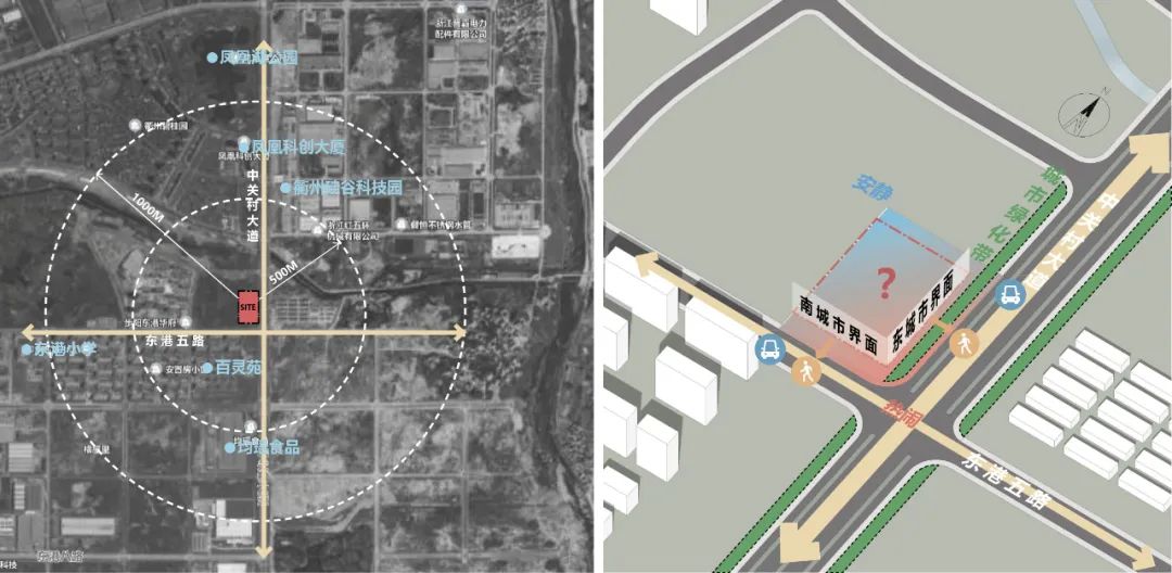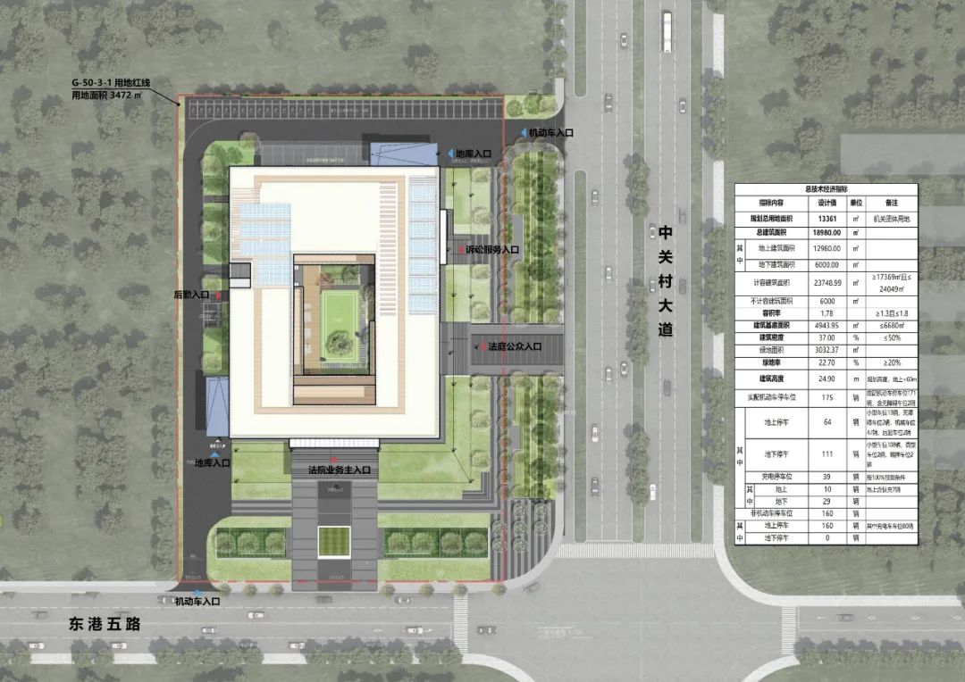 場(chǎng)地地處城市道路交叉口,具備良好的形象城市展示界面。東側(cè)的中關(guān)村大道道路等級(jí)較高,兩側(cè)有寬敞的城市綠化帶,可為場(chǎng)地提供景觀資源。在設(shè)計(jì)時(shí)需要著重考慮法院與南側(cè)、東側(cè)兩個(gè)城市界面的關(guān)系。