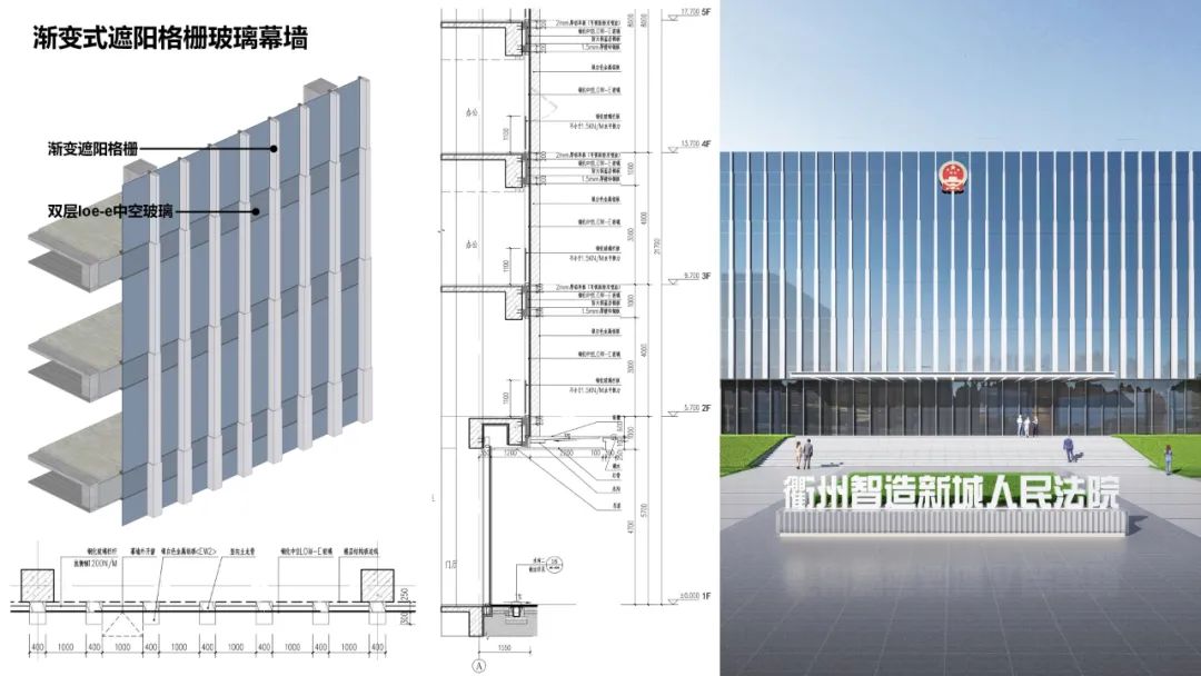 ▲南側(cè)法治界面漸變遮陽(yáng)玻璃幕墻