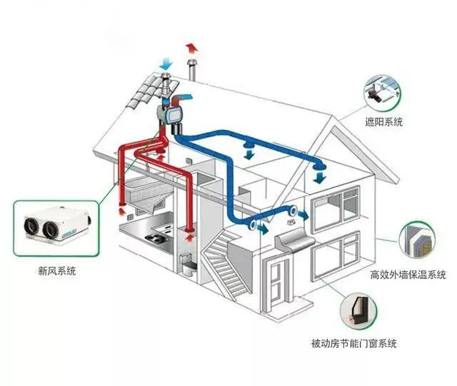 被動房由高效的外墻保溫系統(tǒng)、被動式節(jié)能門窗系統(tǒng)、新風系統(tǒng)、遮陽系統(tǒng)四大系統(tǒng)保駕護航。