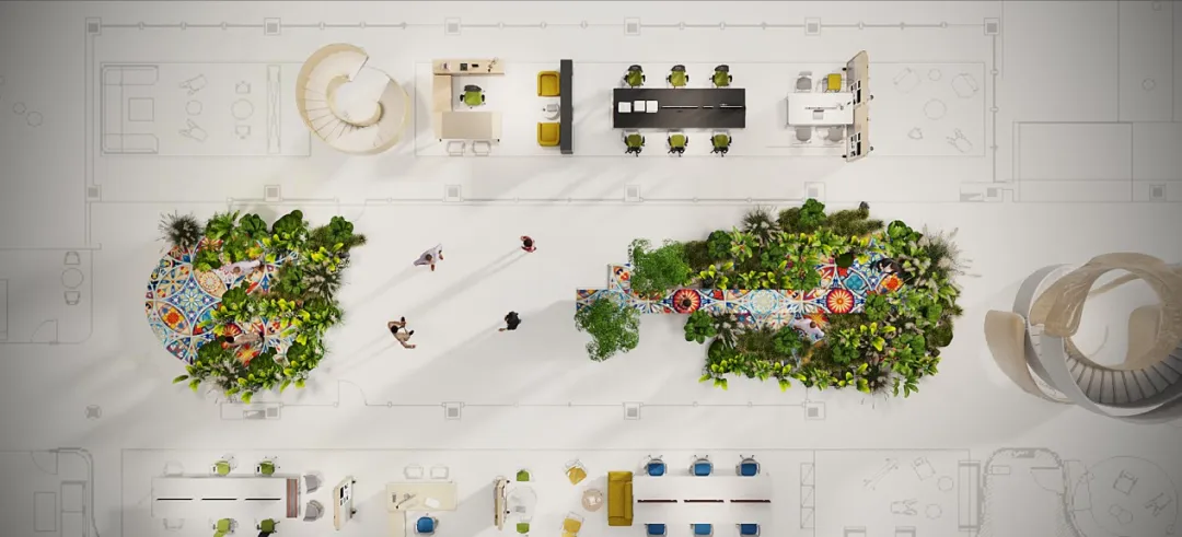 WELL設(shè)計(jì)亮點(diǎn) | 親自然本性設(shè)計(jì) 親近植物和其他自然元素有助于降低舒張壓、抑郁和焦慮水平;提高專注力;更好地?cái)[脫工作壓力和疾?。辉鰪?qiáng)心理健康和耐受性。 植物與環(huán)境融為一體,有助于提高員工士氣、減少曠工以及提高工作效率和工作滿意度。美稷項(xiàng)目的室內(nèi)室外都有隨處可見的植物景觀,有效提高用戶的辦公或?qū)W習(xí)效率。因此,用戶獲得更高的專注力,和更加愉悅的工作或?qū)W習(xí)的心情。