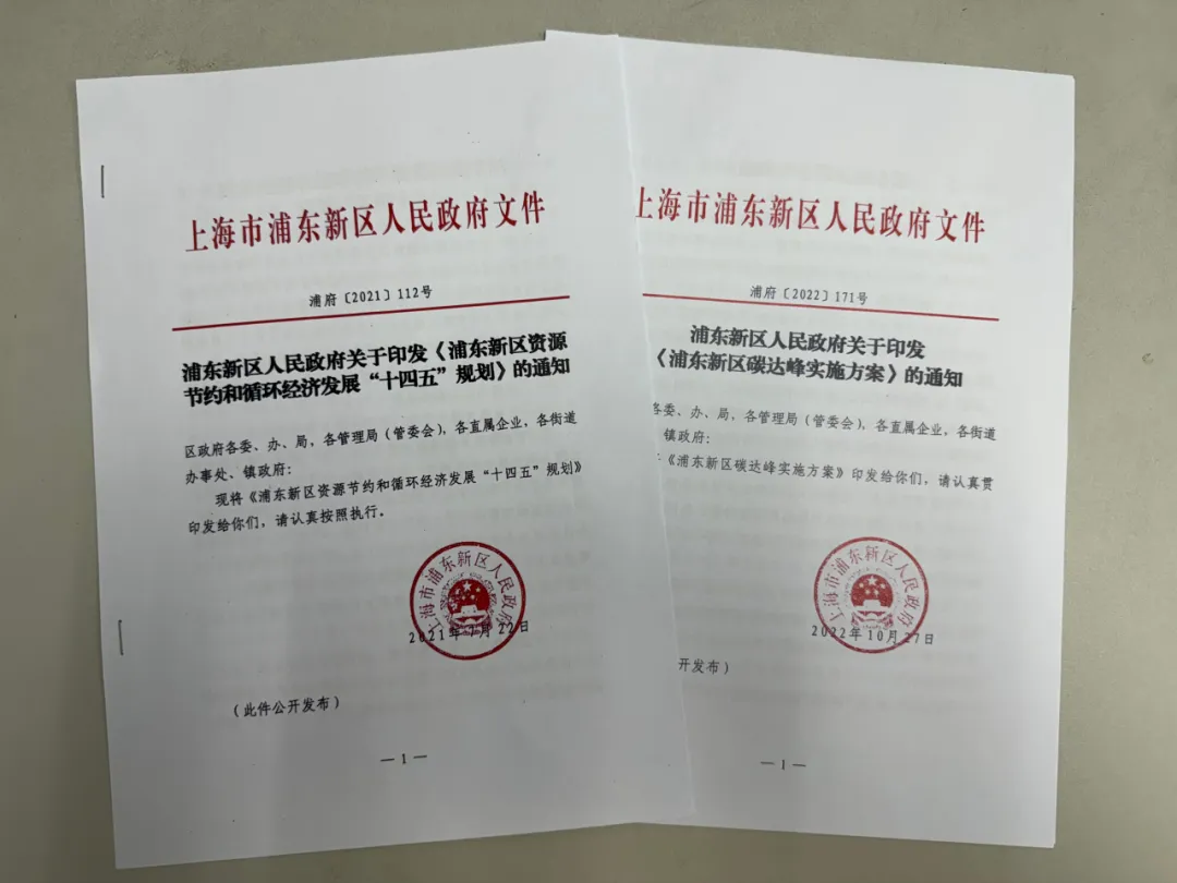浦東新區(qū)相繼印發(fā)了《浦東新區(qū)資源節(jié)約和循環(huán)經(jīng)濟(jì)發(fā)展“十四五”規(guī)劃》《浦東新區(qū)碳達(dá)峰實(shí)施方案》