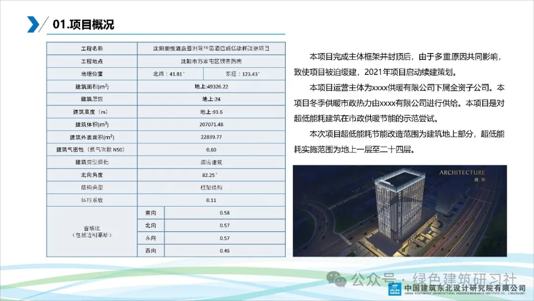 沈陽朋悅酒店暨洲際華邑酒店項(xiàng)目地上建筑面積49326.22平米,建筑高度93.6米。超低能耗節(jié)能改造范圍為建筑地上部分,超低能耗實(shí)施范圍為地上一層至二十四層。