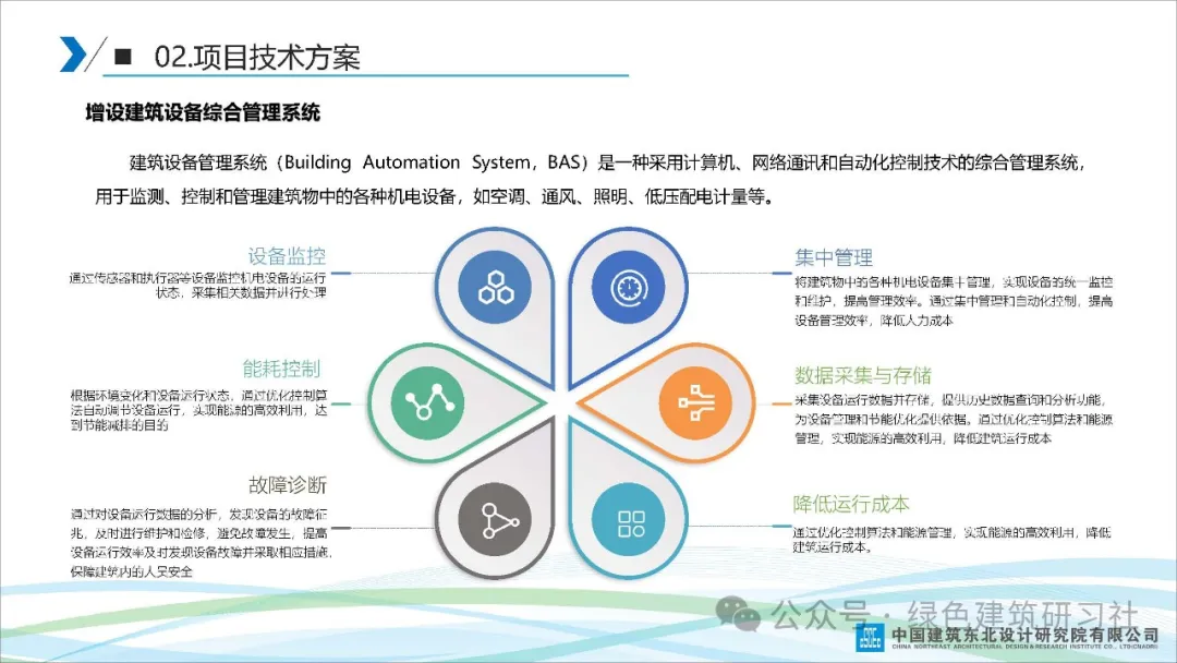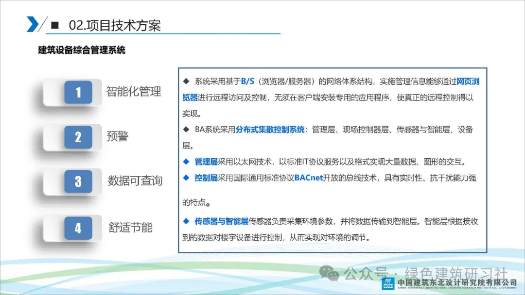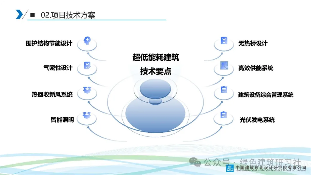 項(xiàng)目主要技術(shù)方案有:圍護(hù)結(jié)構(gòu)節(jié)能設(shè)計(jì)、氣密性設(shè)計(jì)、熱回收新風(fēng)系統(tǒng)、智能照明、無熱橋設(shè)計(jì)、高效供能系統(tǒng)、建筑設(shè)備綜合管理系統(tǒng)、光伏發(fā)電系統(tǒng)。以下為王揚(yáng)先生演講PPT全文: