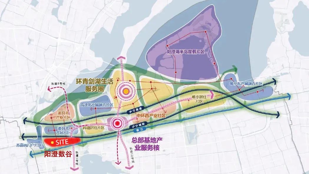 陽澄南岸創(chuàng)新城整體規(guī)劃范圍73.1平方公里,覆蓋婁葑北、唯亭、青劍湖生活片區(qū)以及陽澄半島旅游度假區(qū)。在“一圈一核、城鏈簇團(tuán)”的空間結(jié)構(gòu),陽澄數(shù)谷位于其西南角,為產(chǎn)業(yè)蝶變中的城鐵副中心之一(圖源網(wǎng)絡(luò))。