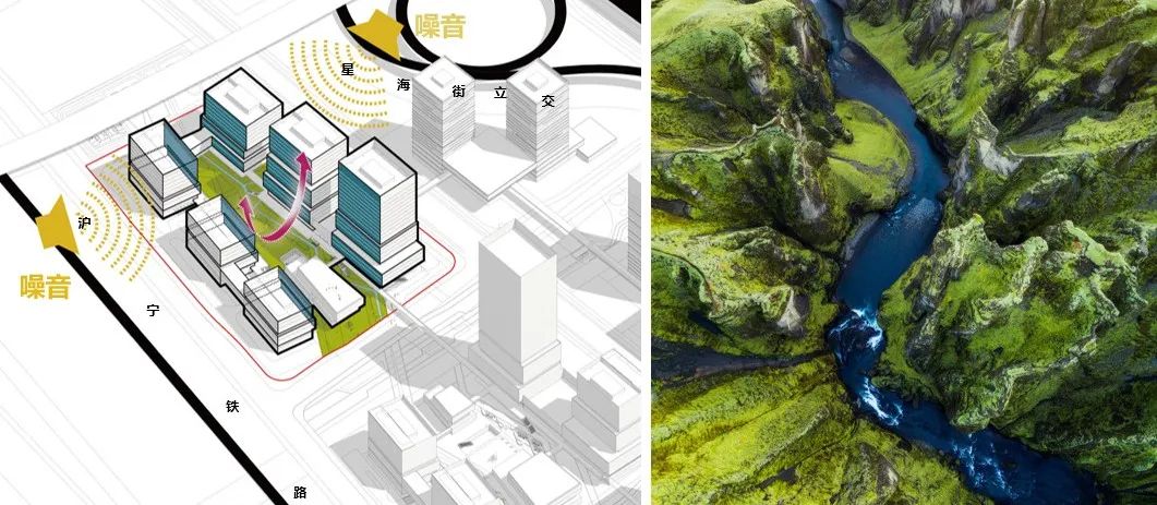 新建元數(shù)智灣(一期)以“谷的形成”為理念,在“胸中有丘壑,腹里有乾坤”的寓意設(shè)計(jì)之外,同時(shí)可有效降低噪音影響。