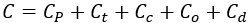 統(tǒng)計既有建筑改造過程中實際的能源、人員以及材料消耗等信息,計算建筑材料生產(chǎn)及運輸、建筑施工、建筑運營和建筑拆除處置五個階段的碳排放量。為便于比較,以單位建筑面積碳排放作為計算值。建筑全生命周期單位面積碳排放總量 C 計算如下: