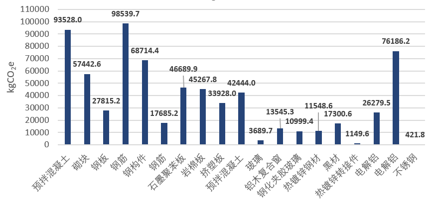 建材運輸過程中的碳排放量與建材的重量、運輸工具、運輸距離有關(guān),建筑建材運輸過程的碳排放總量為 8.78 kgCo2e/,如圖 3 所示。