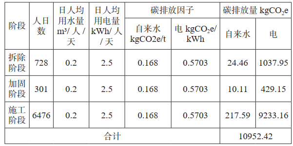從構(gòu)成上看,由于改造項目的特殊性及新冠疫情的影響,該項目施工工期較長,反應(yīng)到碳排放數(shù)據(jù)上,該項目施工人員產(chǎn)生的碳排放量占施工和拆除階段碳排放總量的 62.1%,拋除不可控因素的影響,對現(xiàn)場管理人員以及工人的合理安排將會對施工過程的節(jié)能降碳起到積極性作用。