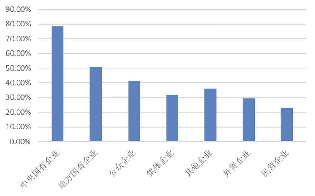 圖3 2023年我國(guó)不同屬性A股上市公司發(fā)布獨(dú)立ESG/社會(huì)責(zé)任報(bào)告比率