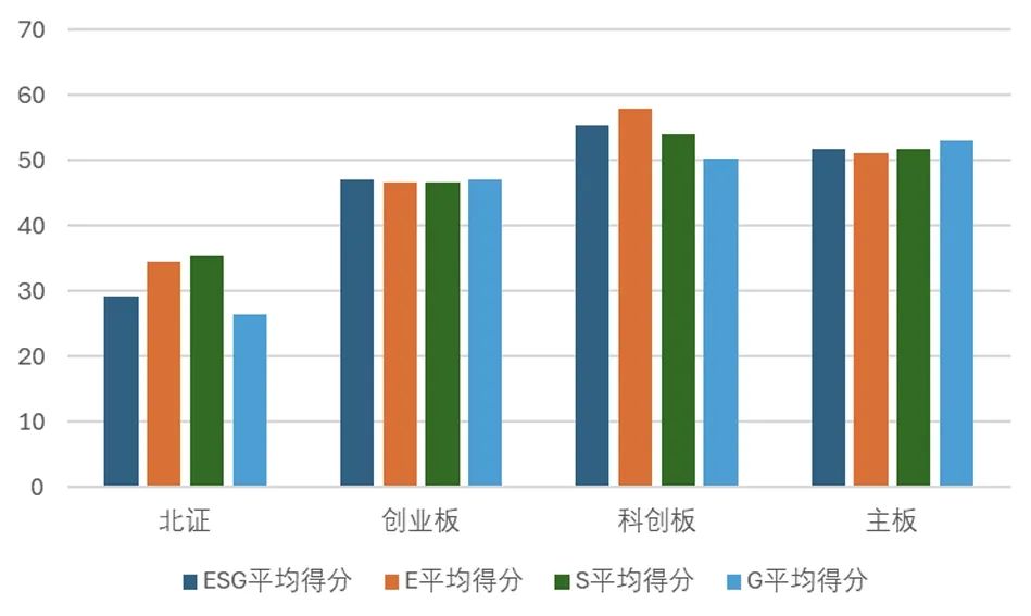 圖4 2023年各板塊A股上市公司ESG及各維度平均得分情況