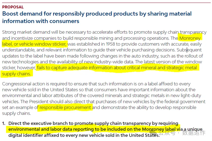 根據(jù)SAFE對美國汽車產(chǎn)業(yè)和關(guān)鍵礦物立法的政策建議,未來這些認(rèn)證標(biāo)識要整合更多信息: