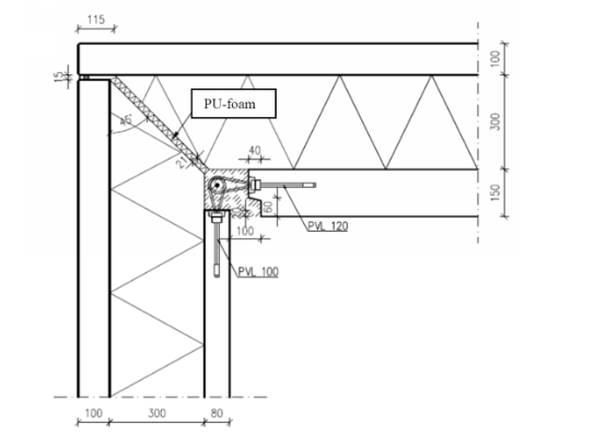 另外,結(jié)構(gòu)和部件接縫處的氣密性應(yīng)當(dāng)從設(shè)計初期就應(yīng)進(jìn)行特別關(guān)注。圖-2為芬蘭某住宅項目在墻角處采用多層單組分聚氨酯泡沫材料對接縫處進(jìn)行密封。同時佩克PVL®鋼絲繩連接環(huán)的采用讓預(yù)制墻墻連接變得簡單易行。我國《被動式超低能耗建筑技術(shù)手冊(試行)(居住建筑)》也對被動房氣密性做出了要求,目前可以通過鼓風(fēng)門法對建筑圍護(hù)結(jié)構(gòu)氣密性進(jìn)行測試。