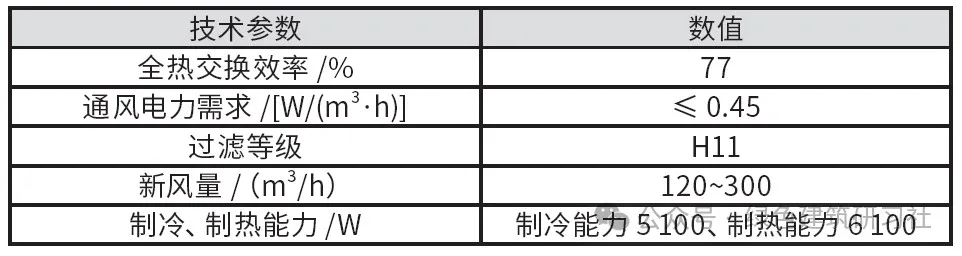 項(xiàng)目團(tuán)隊(duì)選用的新風(fēng)設(shè)備的技術(shù)參數(shù)如表2所示。