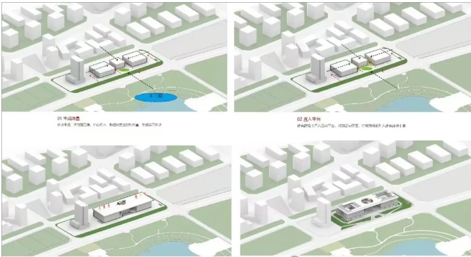 項(xiàng)目用地為120*295的矩形地塊,場(chǎng)地臨城市主干道呈扁長(zhǎng)形。設(shè)計(jì)將博物館、檔案館、革命歷史紀(jì)念館三個(gè)功能作為一個(gè)整體進(jìn)行設(shè)計(jì)。