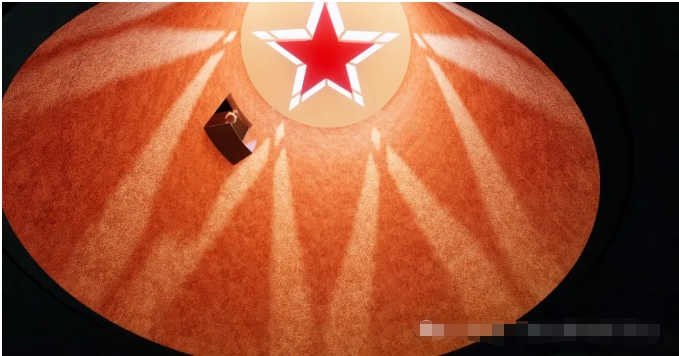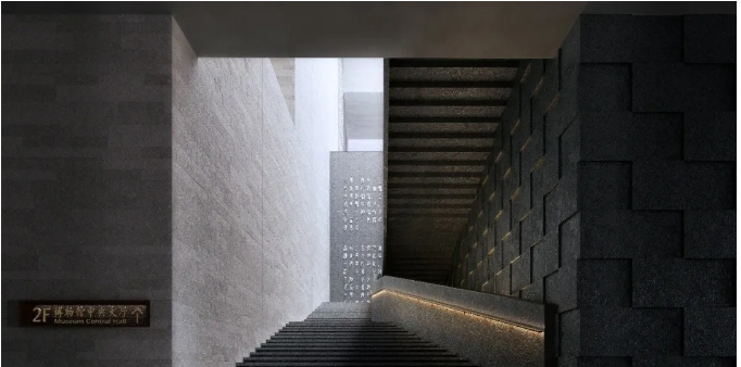 紀(jì)念館中廳同樣運(yùn)用光影來(lái)塑造空間,同時(shí)將紅色元素融入其中,營(yíng)造出一個(gè)神圣,崇高的紀(jì)念性場(chǎng)所。