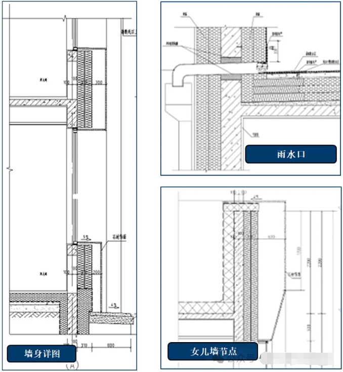 外墻保溫:外墻保溫材料為A級(jí)巖棉板(厚度310mm,干密度150Kg/m3,K≤0.15w/㎡·k)