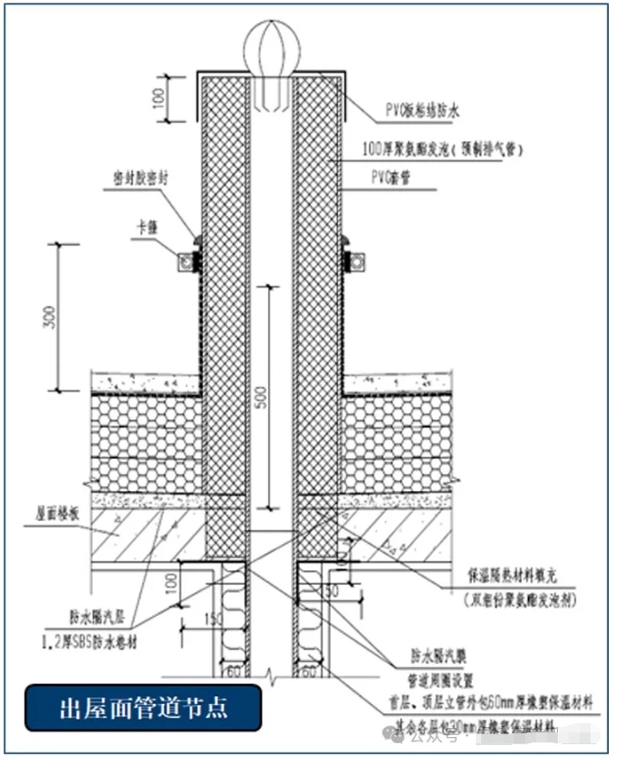 屋面做法:防水做法:3+3厚高聚物改性瀝青防水卷材(聚酯氈胎體,Ⅱ型);保溫材料:擠塑聚苯板,密度:30Kg/m3