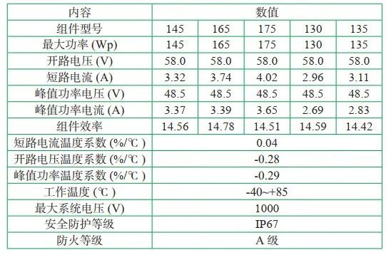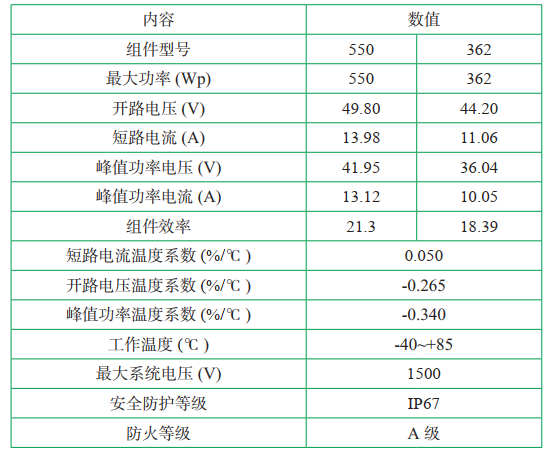 表 2 碲化鎘薄膜光伏組件參數(shù)表