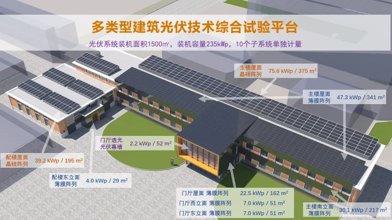 對(duì)原有建筑進(jìn)行全面改造,針對(duì)熱工薄弱環(huán)節(jié)實(shí)施全樓門(mén)窗、幕墻改造,利用光伏形成立面外遮陽(yáng),整體更換一級(jí)能效采暖、空調(diào)、熱水設(shè)備,充分降低建筑自身能耗;擇優(yōu)布局單晶硅、碲化鎘發(fā)電玻璃,安裝屋頂附加式、屋頂一體化、幕墻附加式、幕墻一體化及透光光伏幕墻,構(gòu)建“光儲(chǔ)直柔”新型電力系統(tǒng),開(kāi)展直流機(jī)電設(shè)備及柔性調(diào)控技術(shù)等應(yīng)用示范;實(shí)現(xiàn)全年產(chǎn)能大于建筑用能,每年可減少碳排放約160噸,是全國(guó)首個(gè)獲得運(yùn)行標(biāo)識(shí)的產(chǎn)銷(xiāo)平衡型零碳建筑。入選我國(guó)“雙十佳”節(jié)能實(shí)踐清單、住建部首批城市更新典型案例。
