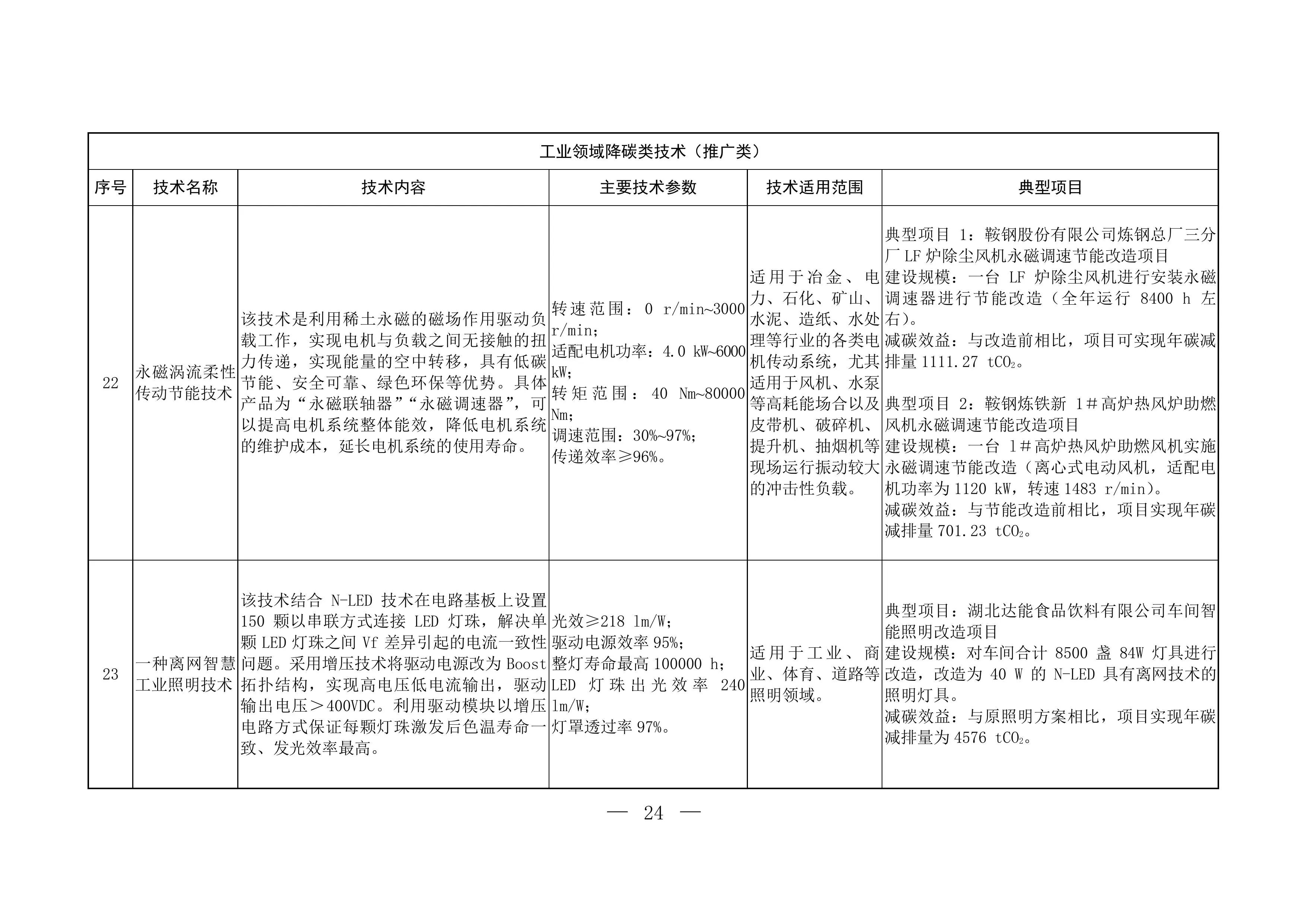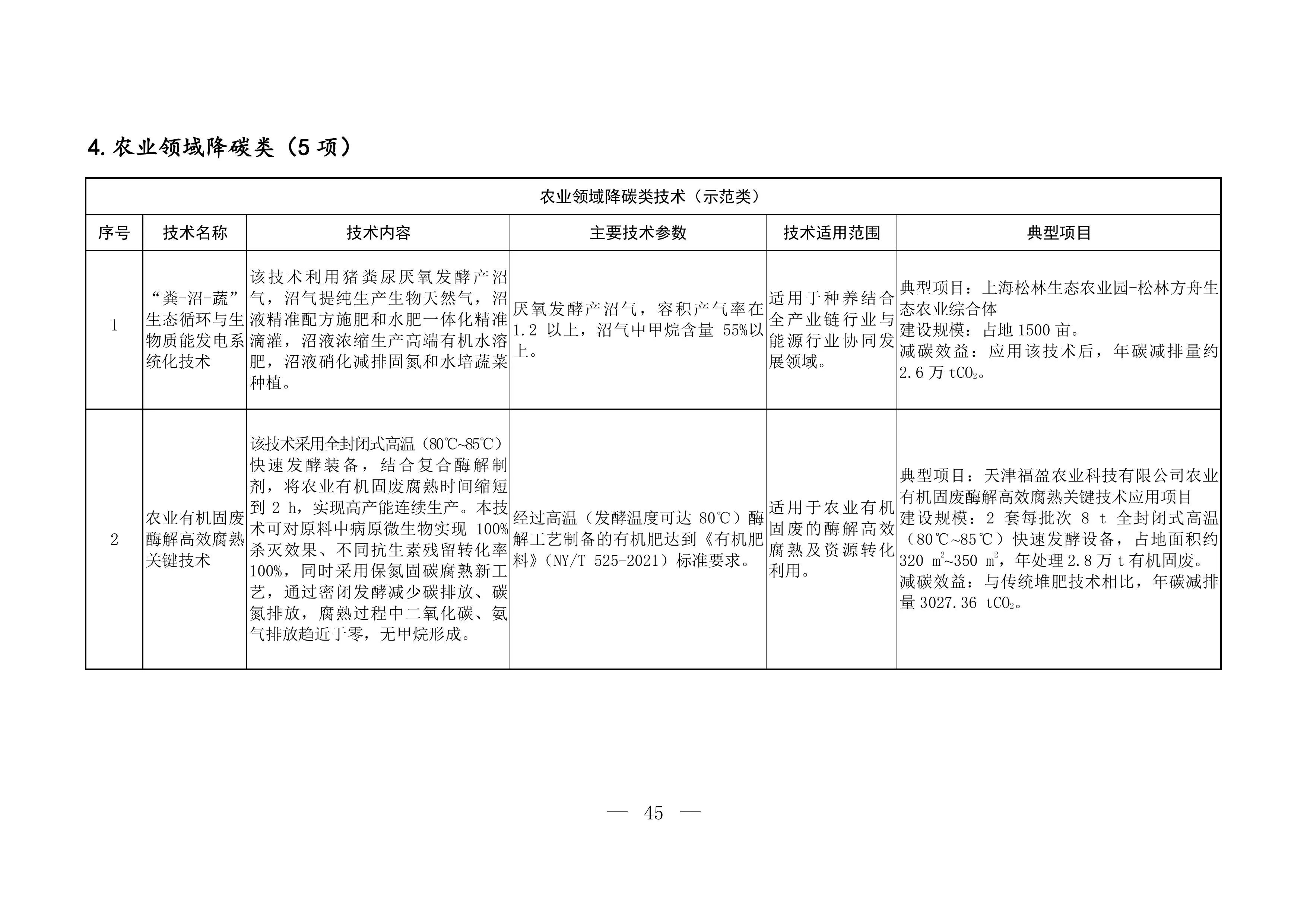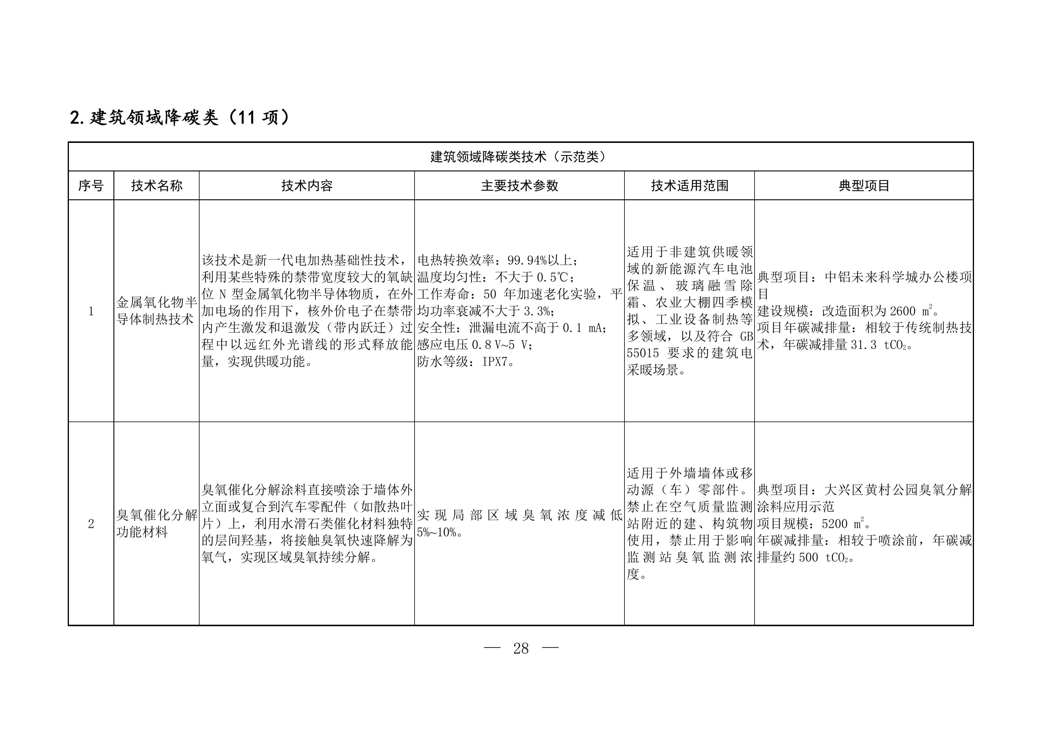 其中,能源綠色低碳轉(zhuǎn)型類20項;重點領(lǐng)域降碳類59項,包括工業(yè)領(lǐng)域降碳類(28項)、建筑領(lǐng)域降碳類(11項)、交通領(lǐng)域降碳類(15項)、農(nóng)業(yè)領(lǐng)域降碳類(5項);儲碳固碳類3項;數(shù)智賦能類14項;非二氧化碳減排類7項。