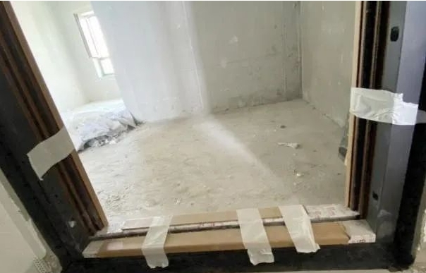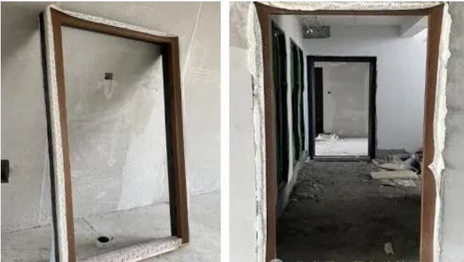 門框進(jìn)場集中粘貼隔氣膜(左),門框依控制線安裝