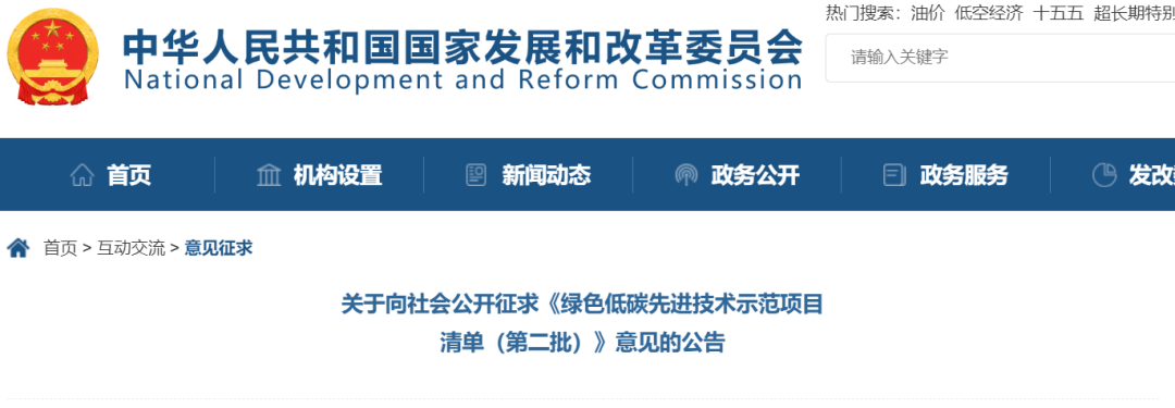 國(guó)家發(fā)改委《綠色低碳先進(jìn)技術(shù)示范項(xiàng)目清單(第二批)》征求意見
