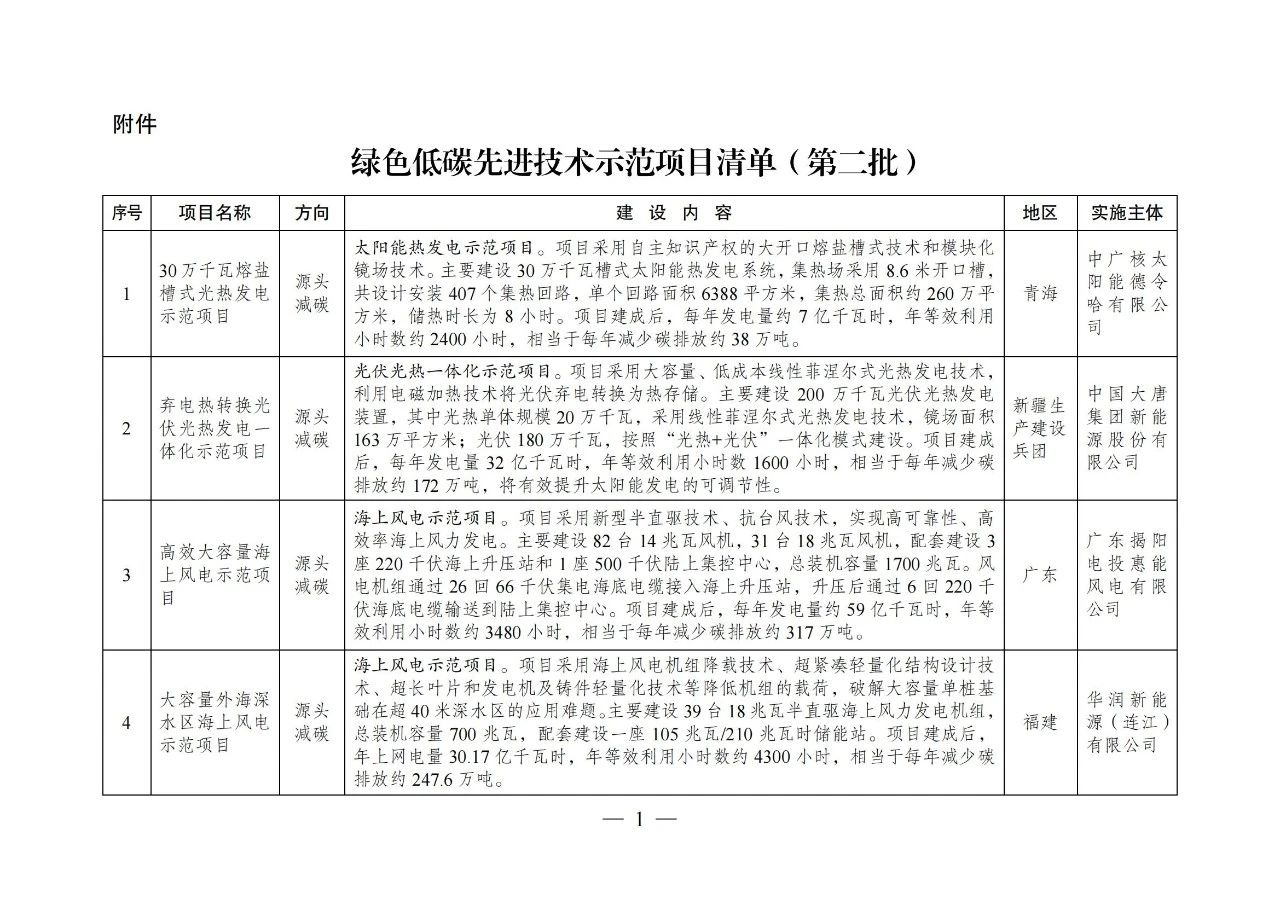 附件:綠色低碳先進(jìn)技術(shù)示范項(xiàng)目清單(第二批)(公開征求意見稿)