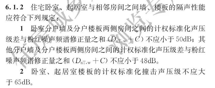 6.1.2 住宅臥室、起居室與相鄰房間之間墻、樓板的隔聲性能應(yīng)符合下列規(guī)定: