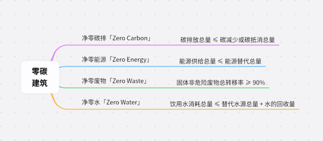 零碳建筑實(shí)質(zhì)是基于綠色建筑的環(huán)保特征上,對(duì)碳排放影響加以約束,通過(guò)引入凈零能源、凈零水、凈零廢物和凈零排放等關(guān)鍵策略,實(shí)現(xiàn)建筑全生命周期零碳排放。