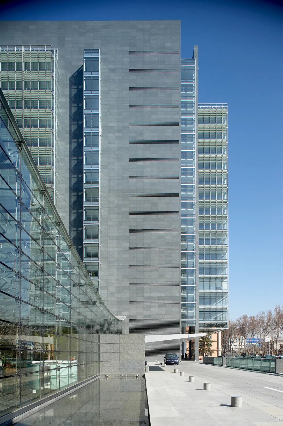 在完成融科資訊中心C座的設(shè)計后,北京建院設(shè)計團(tuán)隊也完成了D座的設(shè)計工作。D座建筑延續(xù)了現(xiàn)代建筑的設(shè)計手法,采用了與之相同的灰黑色花崗巖、玻璃幕墻等建筑材料,在方整造型上,以片墻穿插。建成后,整個園區(qū)呈現(xiàn)出統(tǒng)一、和諧的現(xiàn)代建筑風(fēng)格,得到了多方的認(rèn)可和好評。