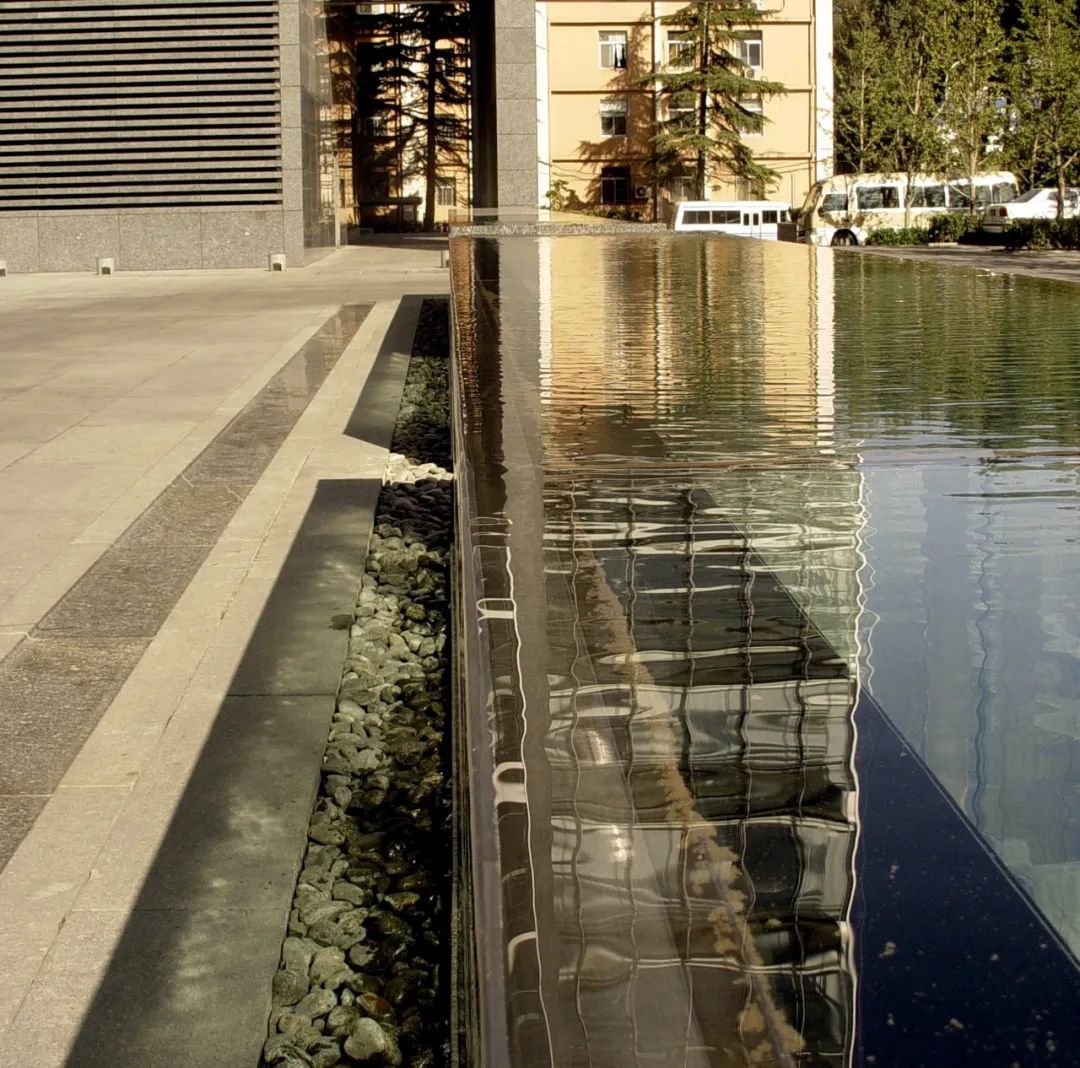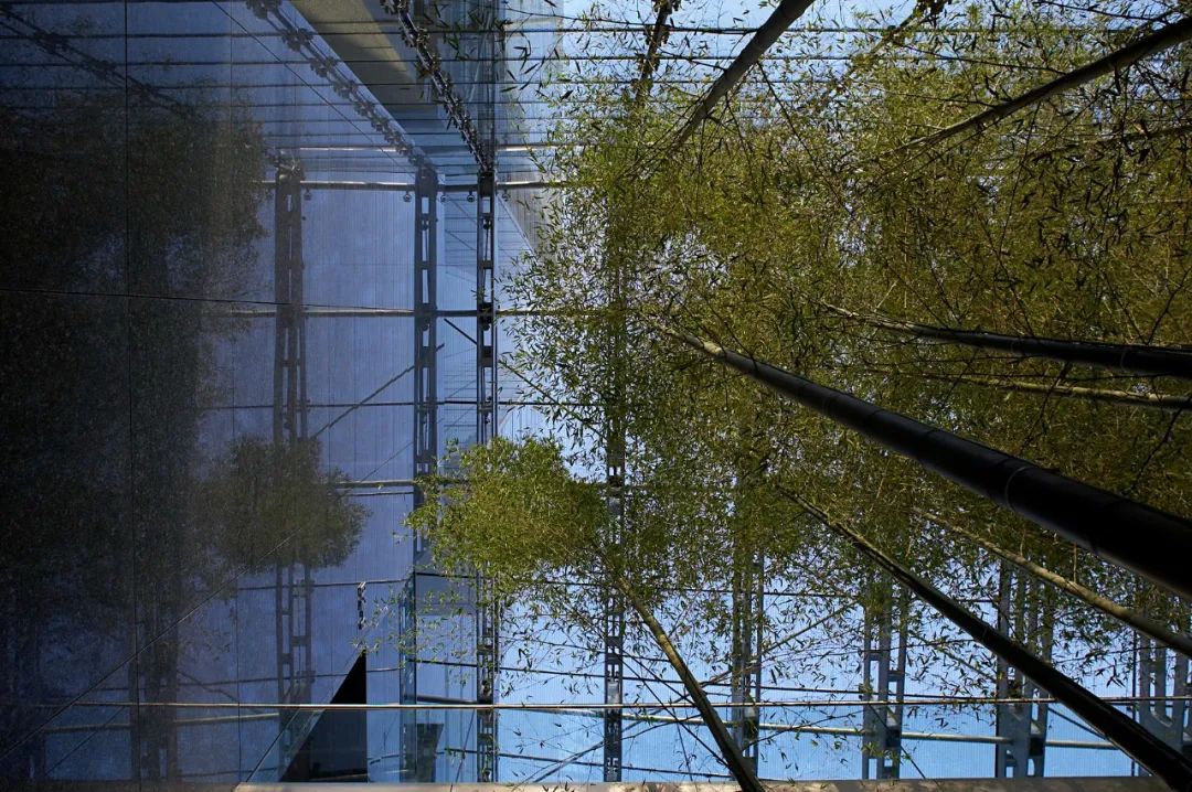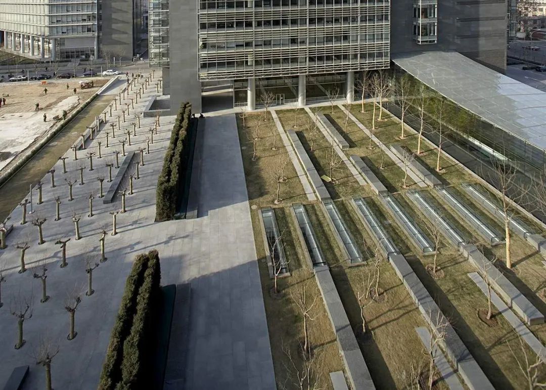 傳統(tǒng)建筑和園林是中國建筑文化的豐富寶藏,現(xiàn)代設(shè)計亦可以從中汲取精華。設(shè)計團(tuán)隊將建筑置于花園之上,運(yùn)用透明、鏤空、借景的手法,豐富空間層次,通過種植池、路面、水景和藝術(shù)小品將兩座樓宇相連,東側(cè)林蔭停車場、中庭及南側(cè)花園、西側(cè)步行區(qū)等將整個建筑烘托在綠色之上。