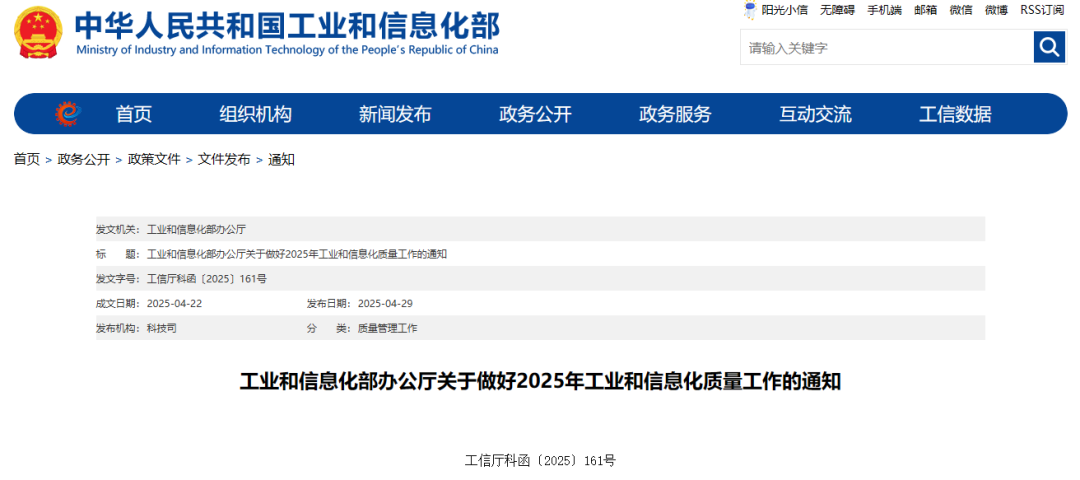 關(guān)于做好2025年工業(yè)和信息化質(zhì)量工作的通知