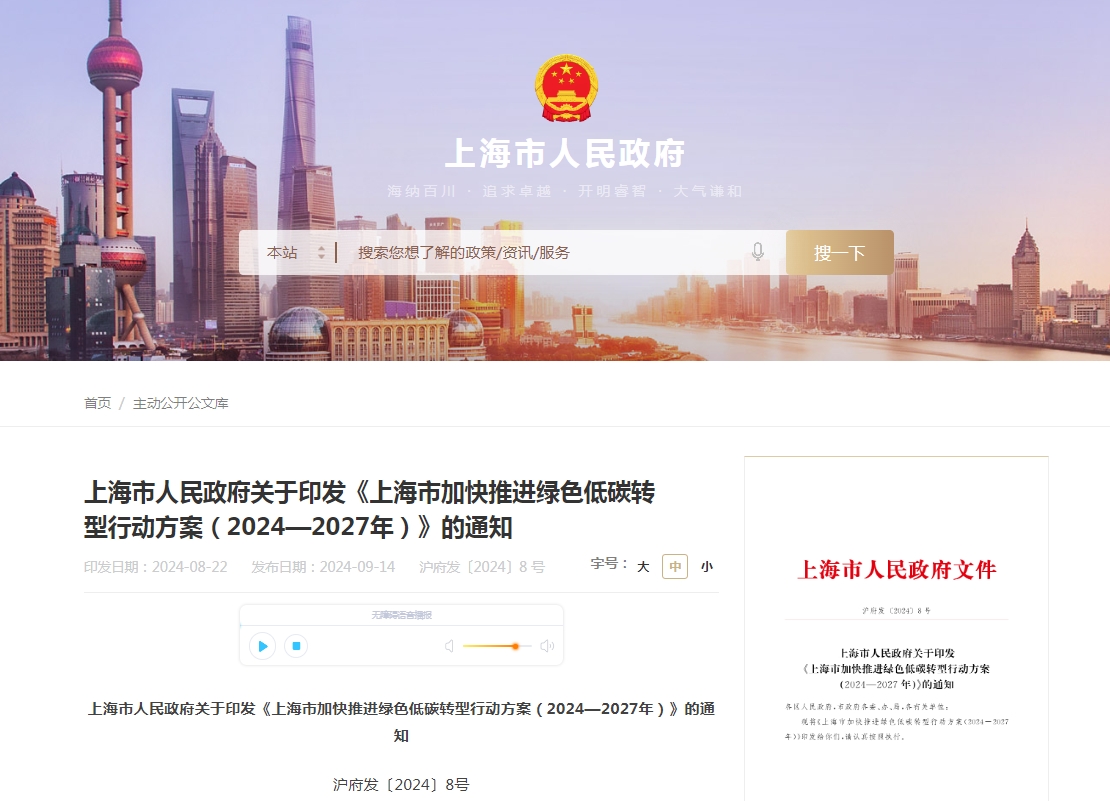 關(guān)于印發(fā)《上海市加快推進(jìn)綠色低碳轉(zhuǎn)型行動(dòng)方案(2024—2027年)》的通知
