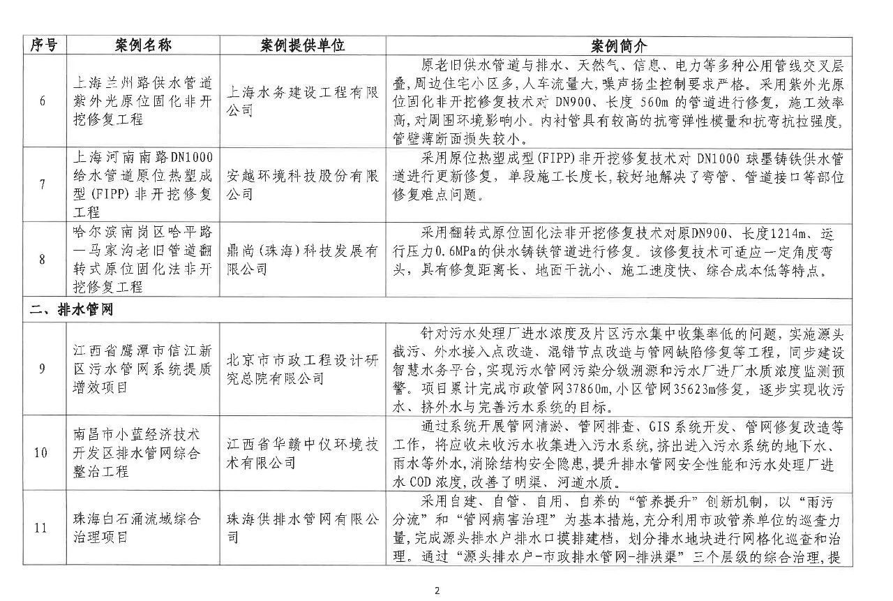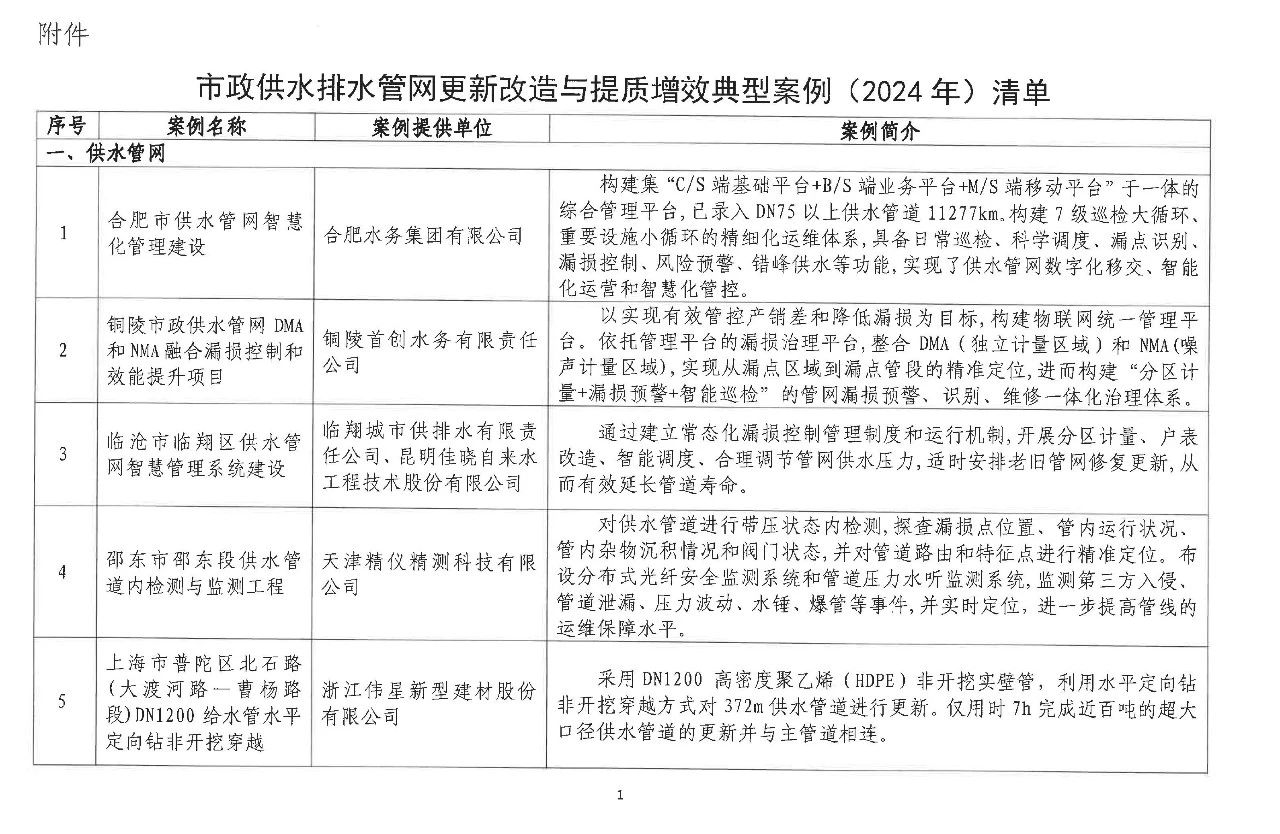關(guān)于發(fā)布市政供水排水管網(wǎng)更新改造與提質(zhì)增效典型案例(2024年)的通知