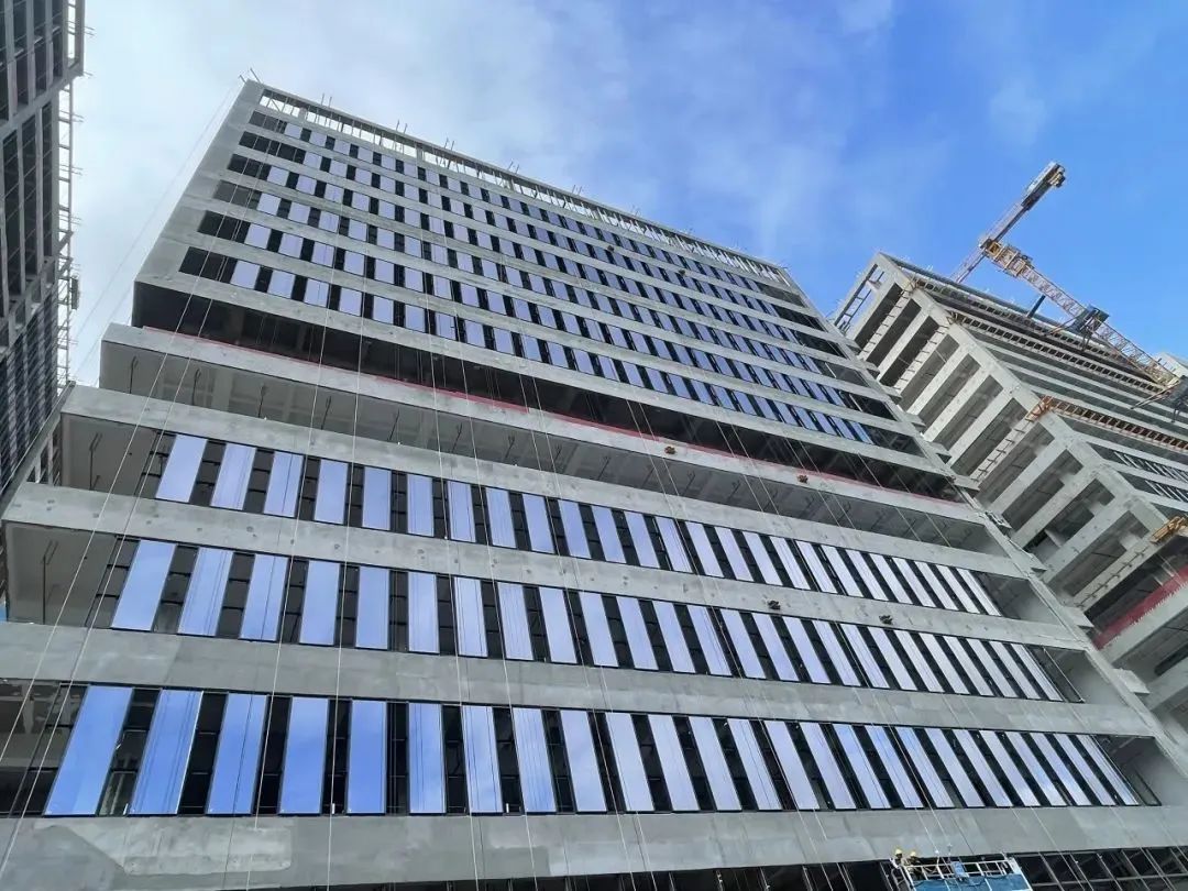 在建筑外圍護系統(tǒng)方面,項目選用框架式玻璃幕墻體系,結(jié)合多腔體隔熱結(jié)構(gòu)與Low-E中空玻璃,顯著提升了建筑的保溫、隔熱與氣密性能,外圍護整體節(jié)能性能提升超過20%。