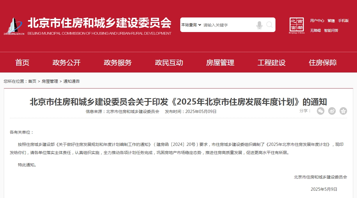 北京市發(fā)布2025年住房發(fā)展年度計(jì)劃
