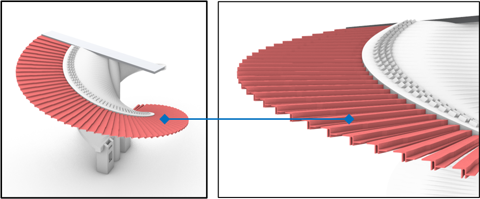 然而在大氣磅礴又纖細(xì)輕盈的外觀之下,是前所未有的復(fù)雜結(jié)構(gòu),雙螺旋屋面結(jié)構(gòu)對項目建造團隊提出了極為嚴(yán)峻的挑戰(zhàn):