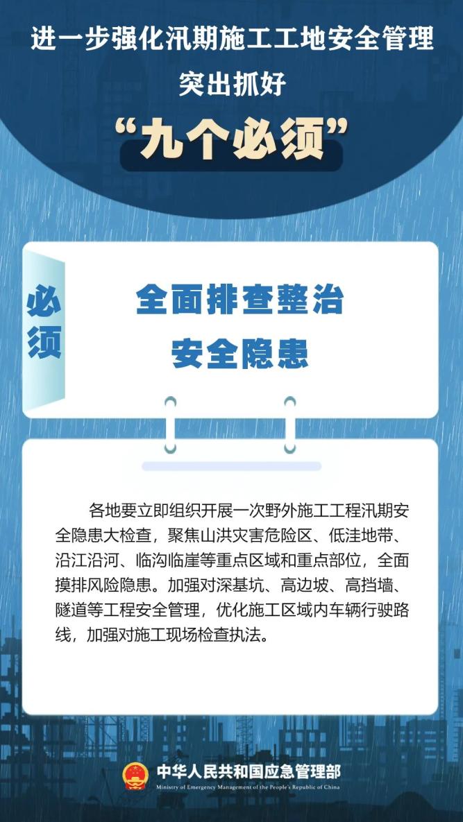 通知強(qiáng)調(diào),進(jìn)一步強(qiáng)化汛期施工工地安全管理,要突出抓好“九個(gè)必須”: