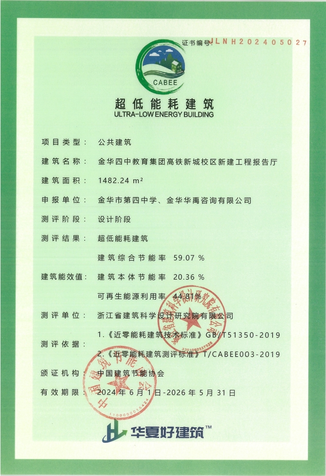 2024年6月獲得超低能耗建筑標(biāo)識(shí),成為婺城區(qū)首個(gè)超低能耗建筑。